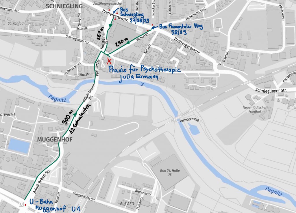 Linie U1: Haltestelle Muggenhof (900m – 12 Gehminuten)